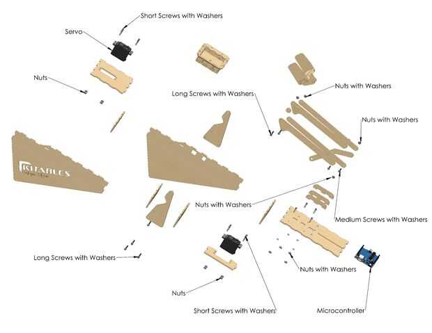 • ANTES DE PEGAR PIEZAS JUNTAS! Servos de tornillo y Arduino en su correspondiente láser corte de piezas en la orientación correcta. Se refieren a los cuadros y vídeo para determinar la orientación correcta y compruebe de doble/triple/cuádruple que tiene en la orientación correcta porque remontar más tarde es un dolor.