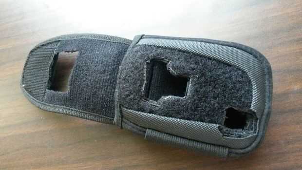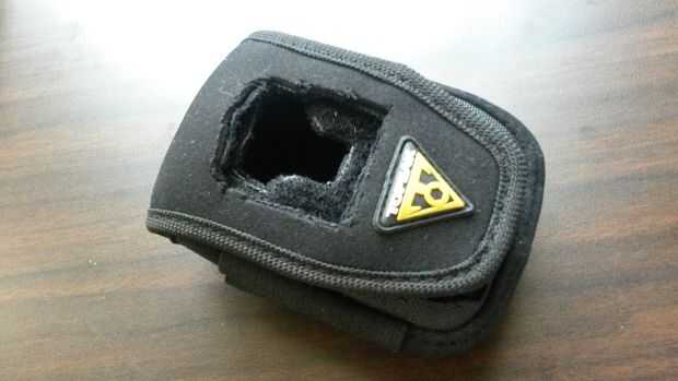 Corte una abertura en la bolsa de bici pequeña para emparejar el perfil de los LED y el diodo de la foto y cortar un agujero para el interruptor. Inserte el dispositivo en la bolsa y cierre la bolsa. Encontré que cortadores de alambre hacen un buen trabajo en el corte a través de este material. Fije la bolsa a la tija de sillín de bicicleta y listo!