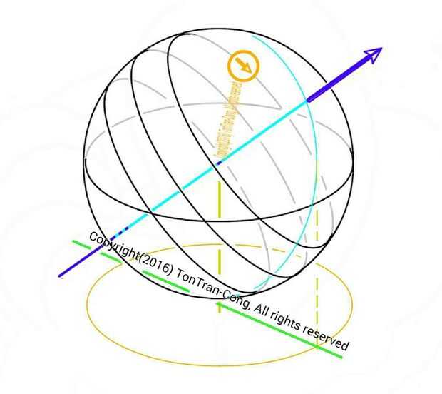 5/espera la primera etapa del divisor hacia abajo, inclinado en ángulo de latitud, en la dirección de 180 grados o 360 grados dependiendo de su polo inferior celestes siendo Polo Sur o norte celeste. La primera pierna hacia abajo el eje Celestial en la figura.