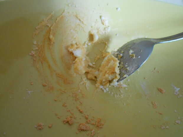 La mantequilla será desmenuzable y sólido un poco cuando te afeitas primero el bloque tan crema lo ligeramente contra el lado de la taza con el dorso de una cuchara a medida que se mezcla.