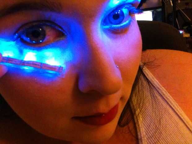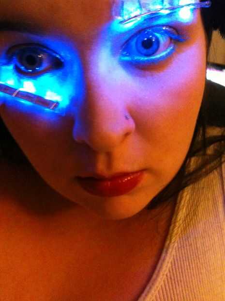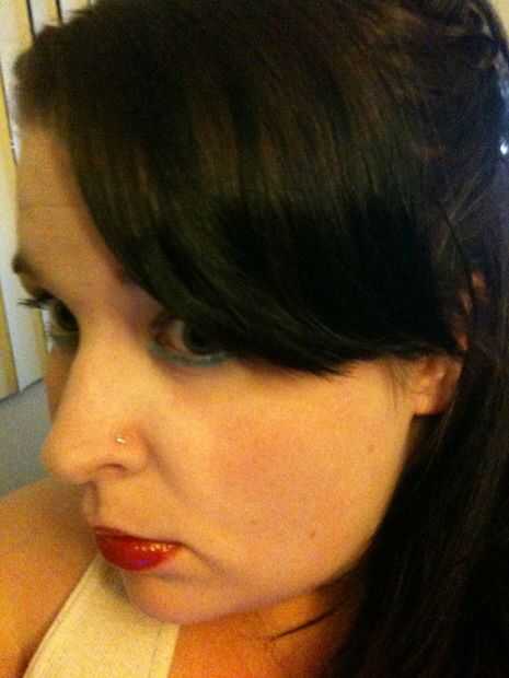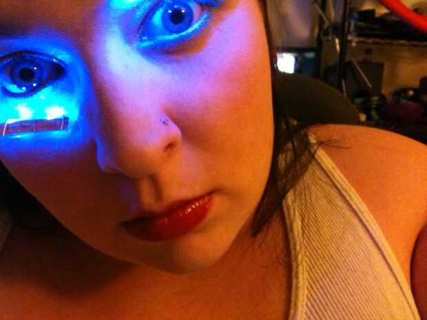 Para menos dolor, menos sangre, menos pérdida de pelo... No se aplican directamente a la ceja. Nunca he usado pegamento de la pestaña, así que no tenía ni idea de lo potente que era. Ahora me falta un pedazo de ceja. Pero mi sombra eléctrica valió la pena. : D Si llevo esto a un club, yo aplicaría probablemente en el mismo lugar, en la ceja... pero con menos cola. Puse demasiado, yo... sí. Está detrás de mí ahora. Puse el pedazo de ceja en la palma de mi marido y le preguntó qué era. Le dije que era mi ceja. Él un poco asustado y le dije a adivinar de donde provenían. Señaló el lugar. Maldita sea. lol. Eso significa que es sensible.