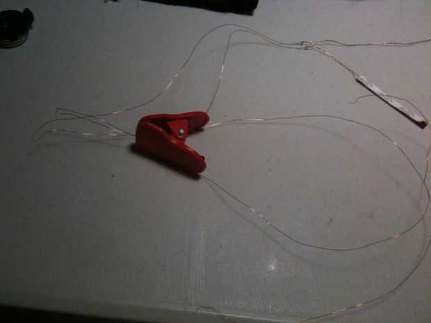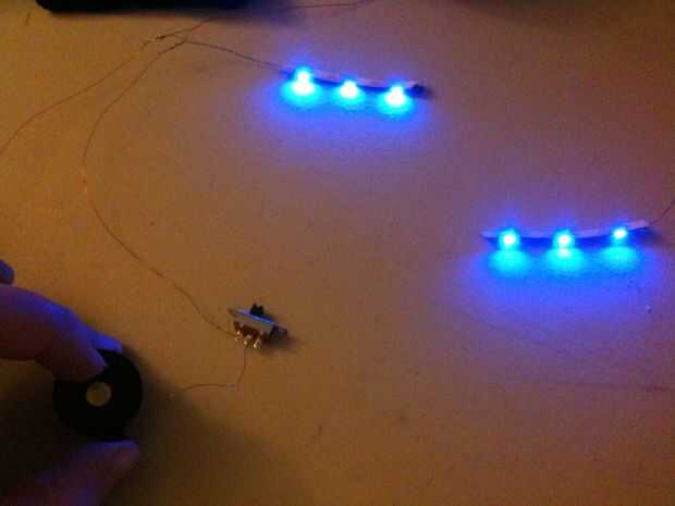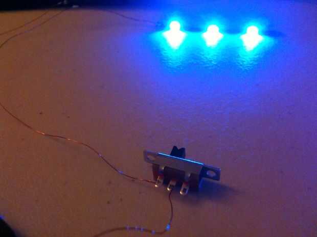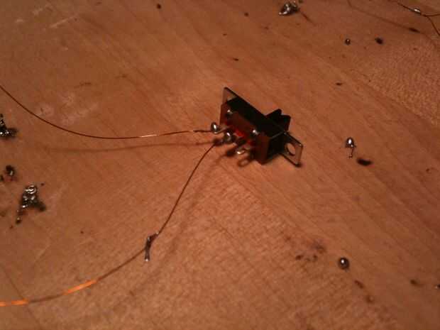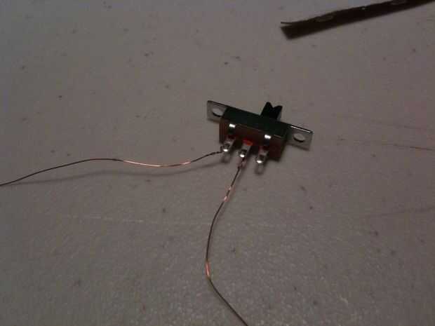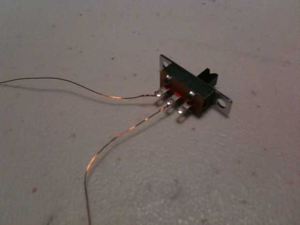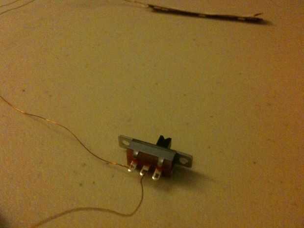 de todos modos, asegúrese de que el cable termina apenas corte, quemado y despojado de barniz. Lazo en los orificios de su conmutador y girar bien. ¡ PRUEBA! : D Si se enciende, siga adelante y soldar los cables al interruptor. TA-DuH! Hice mi primer objeto que tiene un interruptor y que es tan asombroso.
