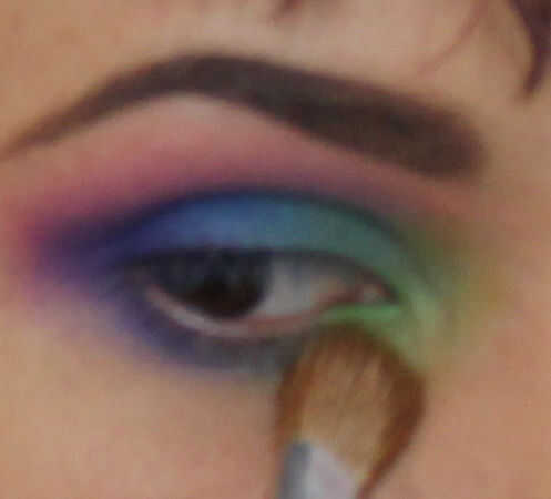 Porque quería agregar más de un acento que a destacar independiente, solía que un cepillo mezclado esponjoso grande Thrash (verde neón) se aplican a la esquina interna y había barrido debajo de los ojos así.