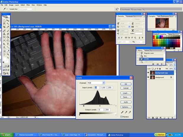 Ahora, en la segunda capa vamos a imagen > Ajustes > niveles y mueva el control deslizante izquierdo ligeramente a la derecha. Esto resaltará los colores de la imagen.