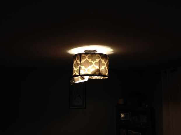 Me decidí a burlarse hasta ver el patrón de luz y salida ligera. Era definitivamente más oscuro de lo que eran las luces del ventilador de techo, pero también era poco acogedor.