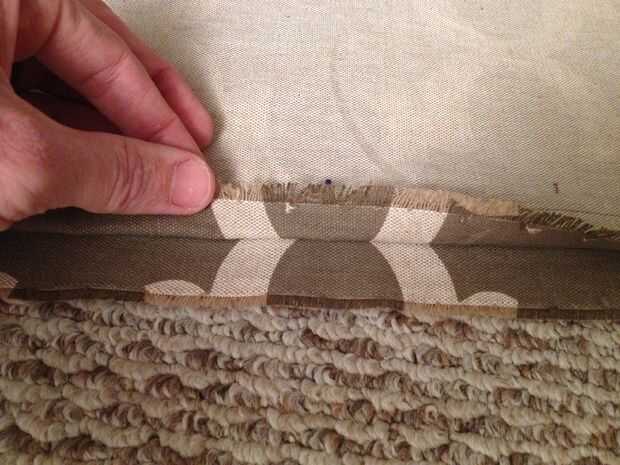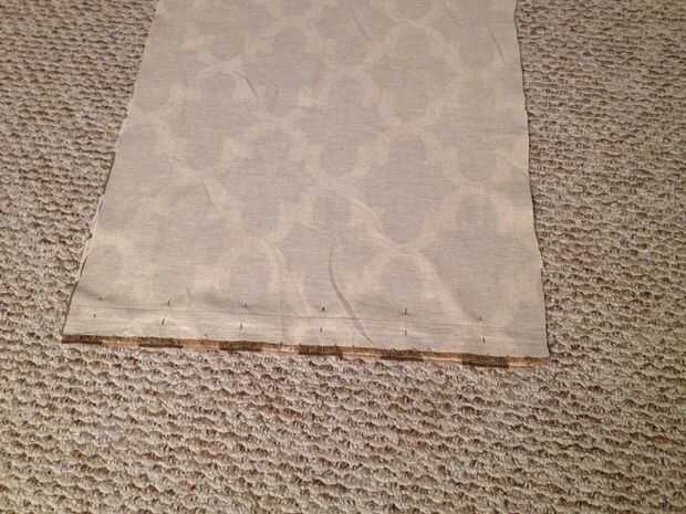 Una vez que fueron resueltos todos los detalles del meollo, I cortar extremos de la tela a su longitud final, había presionado un buen pliegue en ambos extremos de la tela y comenzó a pegar a la tela al bastidor. Otra vez comenzó en la costura cosida y había trabajado mi manera hacia fuera. También pegué a uno todo el camino alrededor del aro por lo que pude tire la tela tensa como que pegado al aro contrario. Yo no tenía suficientes manos para tomar fotos durante esta parte.