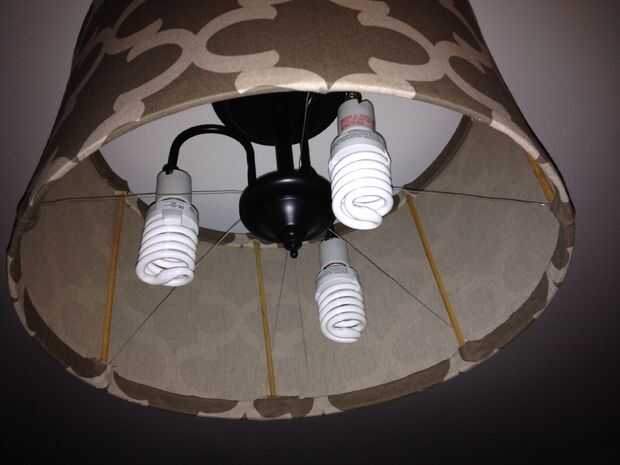 Originalmente había planeado usar algunos plexiglás helado en la parte inferior. Puedo comprar un pezón más largo de lámpara que se enroscará en la parte inferior de la lámpara. El plexiglás se reduciría para colocar dentro del aro de la parte inferior y tienen un agujero en él a deslizarse sobre la boquilla de la lámpara. Podría utilizar una tuerca en la parte superior como un tope de profundidad y la fennial existente para sostener el plexiglás y la armadura. El luminario pintado y la línea de pesca claro no se ven tan malos como me imaginaba. Y realmente no los puede ver a menos que esté sentado en la mesa y mirando hacia arriba (que es muy raro).