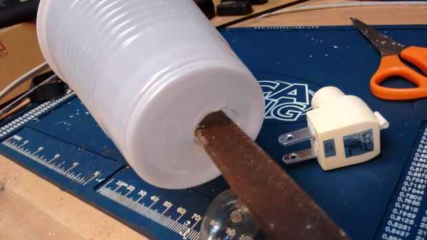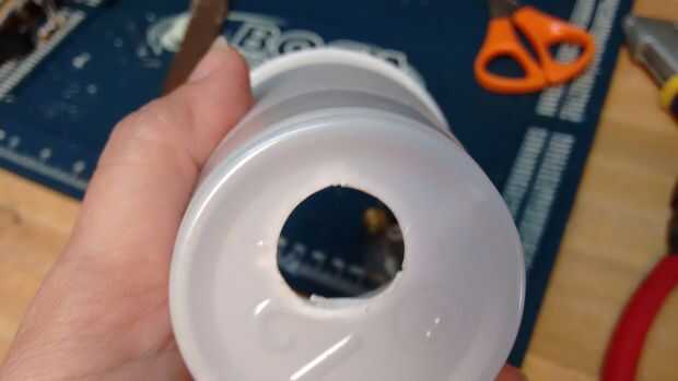Usted tendrá que cortar un agujero en la parte inferior de la taza de te, para insertar su base de luz nocturna. No centro de su círculo o su sombra de luz nocturna de vaso de plástico no se ajusta contra la pared. Compruebe su base de dimensiones apropiadas de luz nocturna.