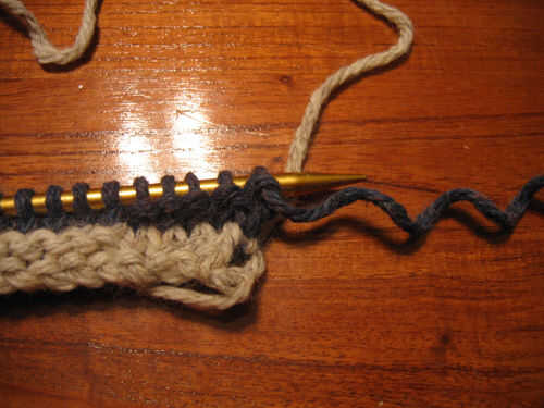 Una vez que termine con esto, lleve 1 de Color detrás de la obra y empezar la siguiente fila de punto. Este es el comienzo de la 2a fila.
