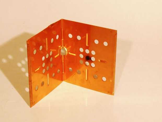 Para obtener la forma requerida de la hoja de cobre tuvo que ser doblado por la mitad para formar un ángulo de 90 grados.
