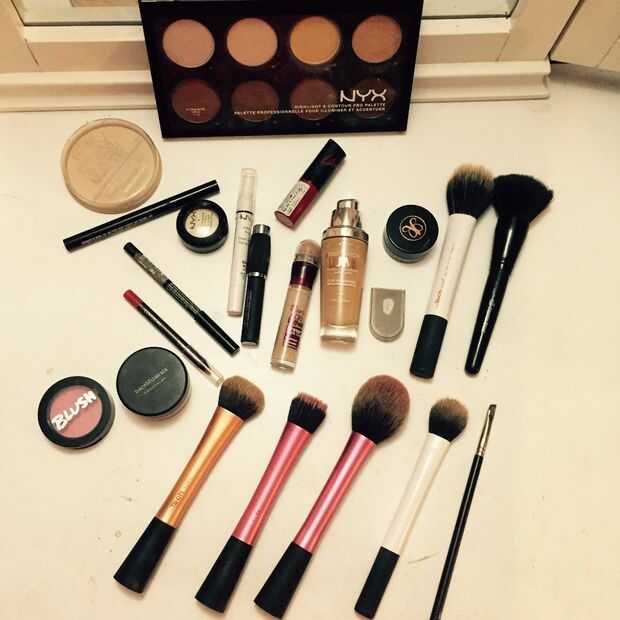 Para el primer paso deberá reunir todos los artículos de maquillaje y los pinceles que necesita.