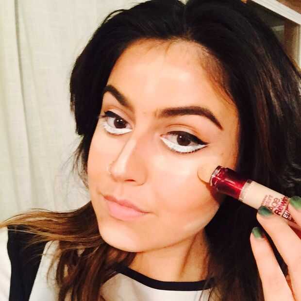 1. Aplique un corrector por debajo de su nuevo línea de pestañas inferior, puente de la nariz, debajo de su línea de contorno, frente y barbilla