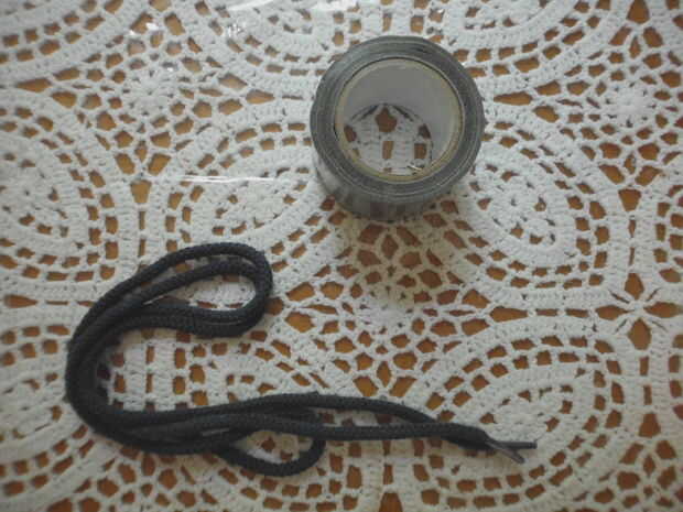 Ahora corte un pedazo de pato cinta de esa longitud y doblar en la mitad del largo camino para que los lados pegajosos se dan cita. Hacer un círculo con ese pedazo de cinta y luego la cinta juntos.