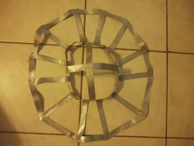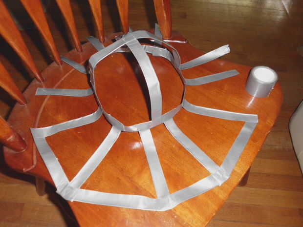 Ahora vamos a hacer el marco para la visera de la gorra. Piense acerca de cuánto tiempo desea que su borde sea. El mío es de aproximadamente 6 pulgadas de largo pero puede tratar de lo que es como largo o tan corto como quieras. Medir una pieza de cinta de pato que es la longitud del borde que desea (en mi caso 6 pulgadas) y doblar en la mitad del largo camino para que el lado pegajoso se enfrenta, al igual que para todos para todas las otras piezas que hemos hecho hasta ahora. Ahora hace 8 o como quieres que de estas tiras. Describirá el ala del sombrero.