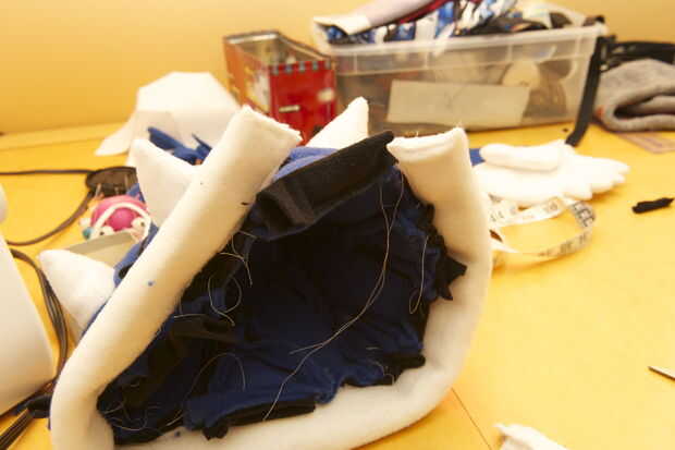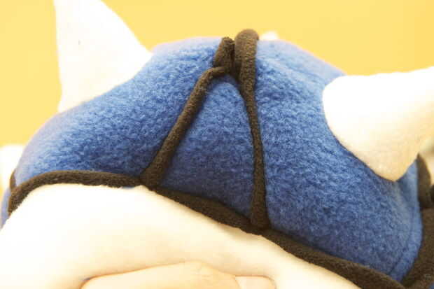 Cuando tira el sombrero en la cabeza, el elástico se estira y también los hexágonos y la costura ya que el paño grueso y suave se estira y utilizamos una puntada de zig-zag. Los triángulos se extienden desde el estado agrupado hasta parecen normales otra vez.