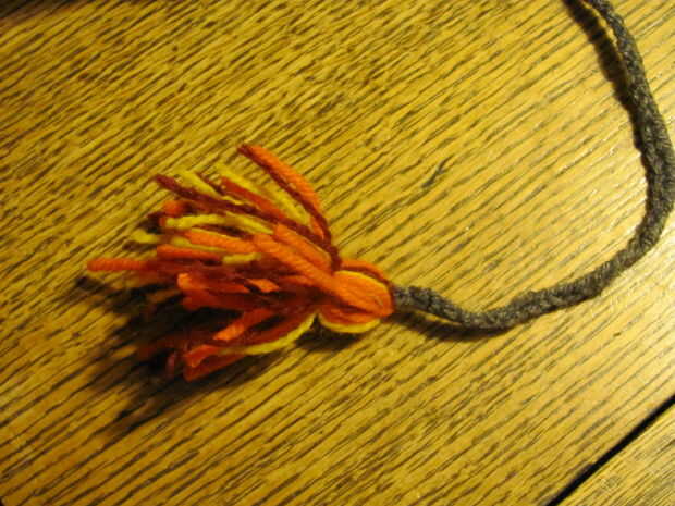 Consigue un trozo de cartón sin embargo largo que desea la chispa para ser. Mina fue alrededor de una pulgada. Tomar el hilo amarillo, rojo y naranja y enróllelos alrededor del tablero de tarjeta una cantidad bastante buena de los tiempos. Cortar el hilo de la bola. Retire con cuidado el hilo de la cartulina. Con una vuelta del hilo, corte el otro para que el hilo está en la forma de una "U" al revés al colgar en su dedo. Inserte el fusible en el hilo de lo que normalmente sería la parte inferior de la "U". Corte un pequeño trozo de hilo rojo. Envuelve formas un poco hacia abajo de forma que normalmente sería la parte inferior de la "U". Atar firmemente. Colocar el hilo en el fusible para que la chispa oculta.