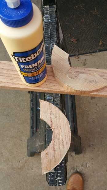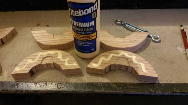 Una vez que tuve todas las piezas de recorte pegan les. No seas tímido con el pegamento. Aprieta en el pegamento y extenderlo uniformemente sobre la superficie con mi dedo, luego que sujeta las dos piezas juntas. Si no tienes pinzas se puede utilizar un tornillo o dos, sólo asegúrese de pretaladrar los agujeros para no partir la madera.