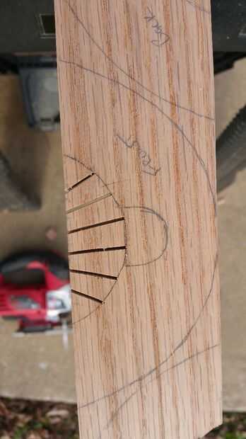 Usando un jig Sierra que cortar cada pieza. para el apretado dentro de curvas hice algunos cortes de alivio.