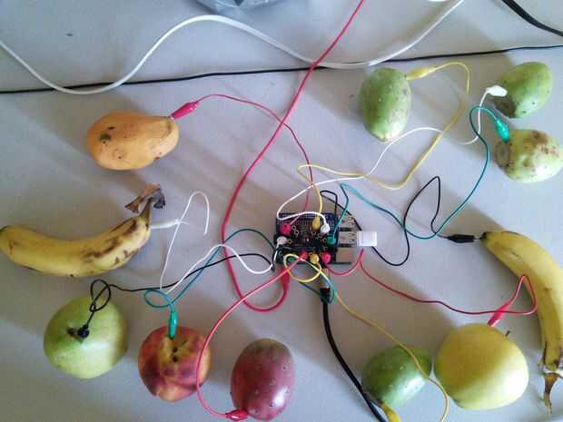 Conectamos todas nuestras frutas al sombrero capacitivo pantalla, solo tenemos en cuenta lo siguiente a la hora de reproducir tonos: