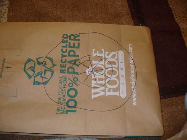 comencé utilizando una bolsa de papel para burlarse de la forma del sombrero. Dibujé una forma áspera para el borde y los lados del sombrero. También sacó la sección redonda necesaria más adelante para la parte superior del sombrero pero se olvidó de tomar fotos de eso.