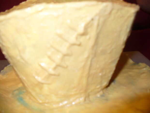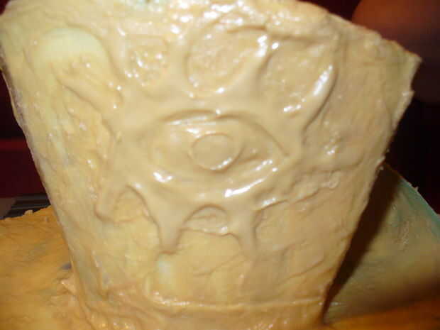 he aplicado una fina capa de látex para la realización exterior seguro para obtener una costura bonita en torno a las áreas débiles de la cola. Yo déjelo secar completamente antes de la segunda capa. mientras esperaba a se seque, pensé en añadir algún detalle a él con la esperanza de agregar factor de fluencia. He añadido un ojo y unos puntos de sutura en la parte superior que salio bastante bien para una adición de último minuto.