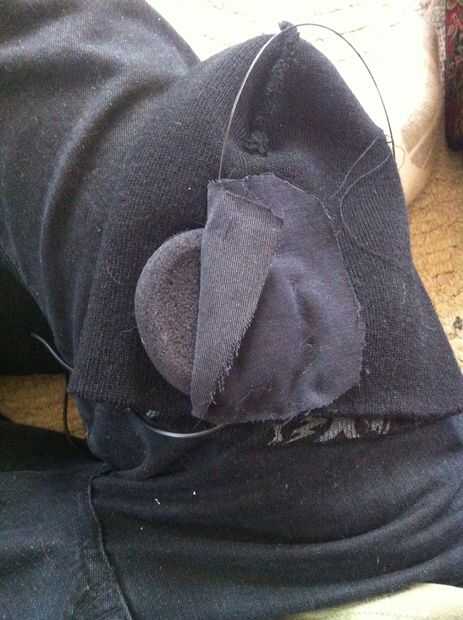 Después de marcado corte el trozo de tela como tal. Vuelta sombrero adentro hacia fuera y comience a coser en asegurarán de que el cable principal es en la parte inferior y que el cable más pequeño que va a la otra ponente es en la parte superior. Una vez terminado coser cortar toda la tela sobrante.