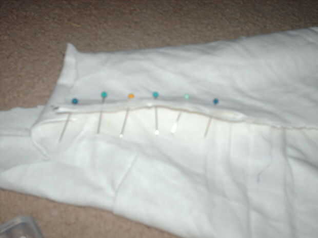 Conseguir algunos de los pernos y luego ponerlos en su lugar. luego comience a coser a lo largo de los pernos como se muestra. Una vez que haya conectado las piezas comienzan entonces a coser juntos la parte superior.