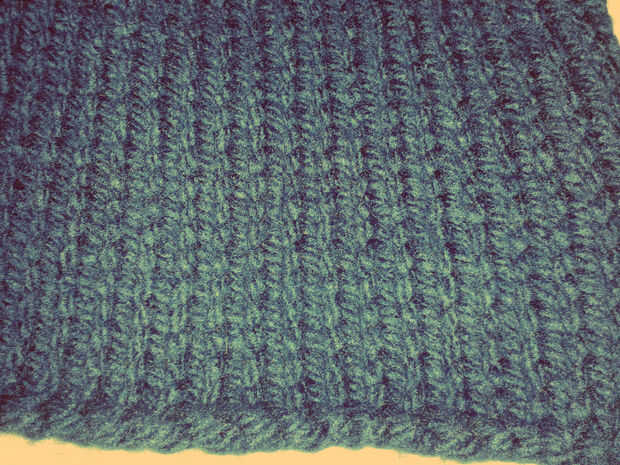 Para este número de puntadas, el sombrero debe ser aproximadamente 8 pulgadas de largo. Me pareció más fácil de medir la longitud de cada vez, en lugar de contar el número de líneas he cosido