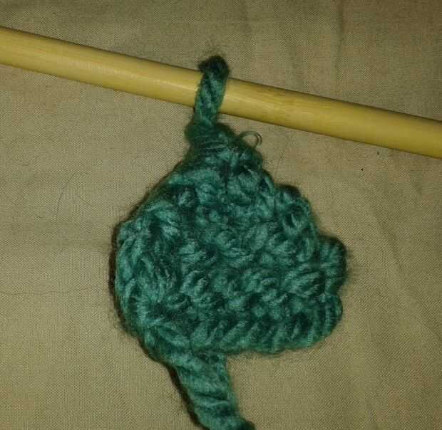 • Para este tamaño de sombrero, usted debe lanzar 8 punto pero puedes hacer menos si quieres un pico más pequeño. Probar y dejar un trozo largo de lana al final - esto se utilizará para coser su punto al sombrero.