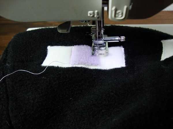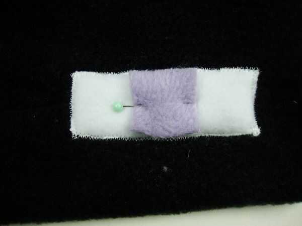 A continuación coloque los cuadrados púrpura en el centro y pasador en su lugar. Coser alrededor de los bordes.