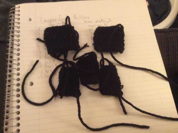 utilizar las agujas de tejer de tamaño 5 y el hilo negro y tejer los dos ojos y las piezas de la tres nariz.