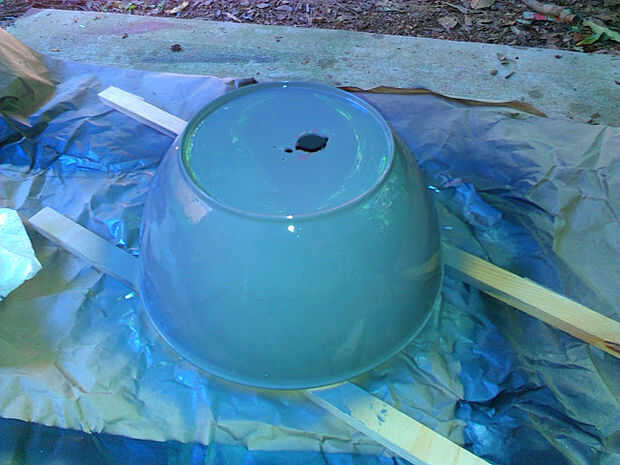 Aerosol-pintura del tazón de fuente de un gris medio a oscuro. Le dan mucho tiempo para secar y curar antes de empezar a dibujar en ella.