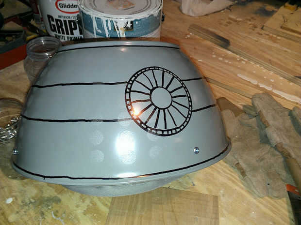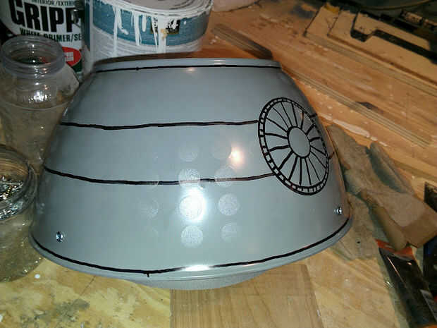 Ahora, utilice un rotulador negro para llenar en los detalles de la estrella de la muerte: