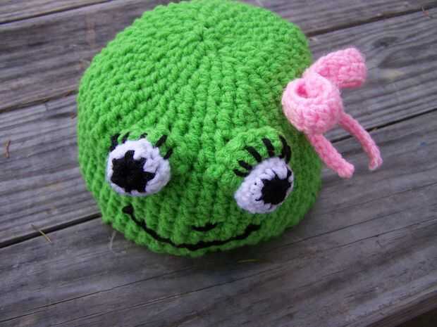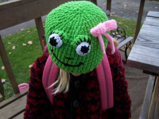 I habd ganchillo sombrero ajeno con hilado de acrílico de color verde lima de Ensenada. El sombrero es que un oído del eith tapa básica las aletas.