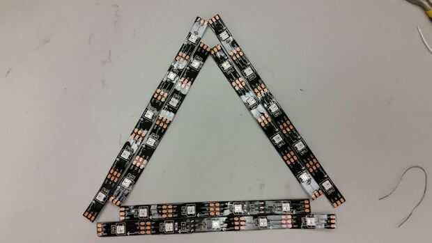 Cuando hice el logo de Digilent hice dos triángulos de LEDs, uno más grande contuvo uno conducido más por cada lado.