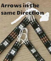 -Prestar atención a la dirección a los LEDs. Tienen datos en y hacia fuera según lo indicado por los pernos y las flechas en las tiras.