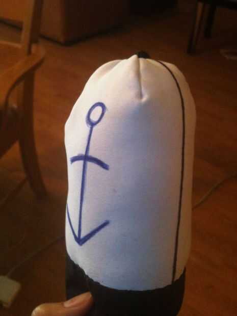 Después de girar hacia el exterior, se puede dibujar en el anclaje con el rotulador azul antes o después de cosas el sombrero, lo que sería más fácil para usted.