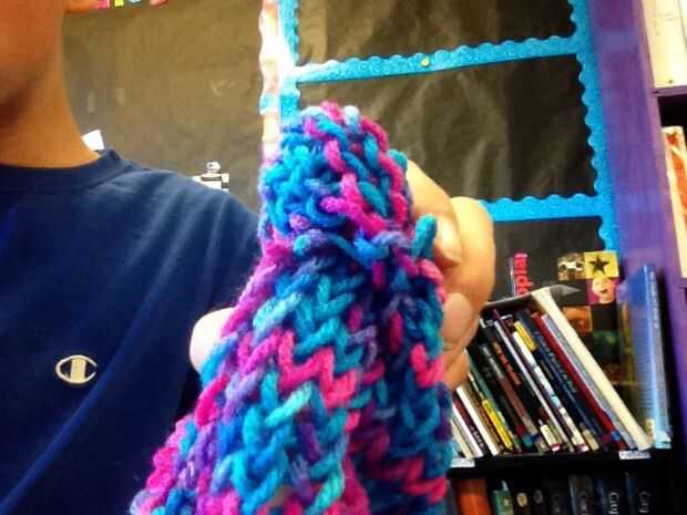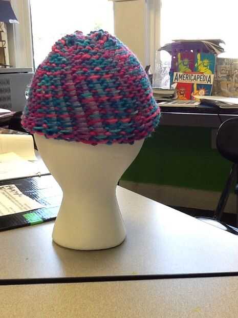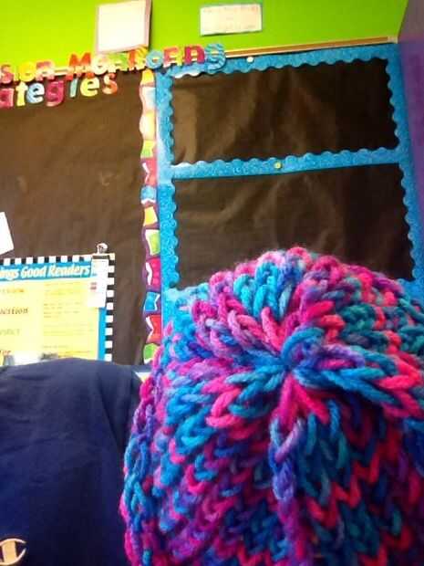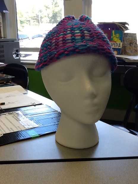 este es el sombrero hizo mi hermana para su cumpleaños, para mantener sus oídos de calentamiento en Alaska :) Utilicé un hilo grueso, abultado que trabajó para arriba rápidamente y el sombrero todo en unas 4 horas.  Porque el hilo es grueso, asegúres