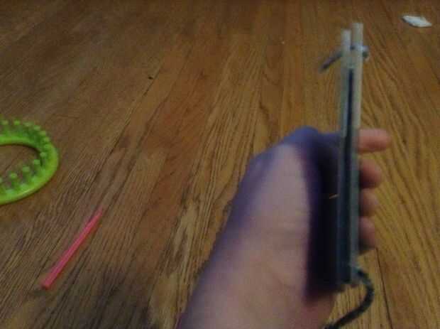 ThiPaso 1: materiales -hilo-telar que hace punto-gancho de tejerPaso 2: Configurar el telar Primero Envuelva el hilo alrededor de la clavija de la parte inferior en telar. Esto ayuda a mantener el hilo en su lugar. A continuación, empezar a envolver