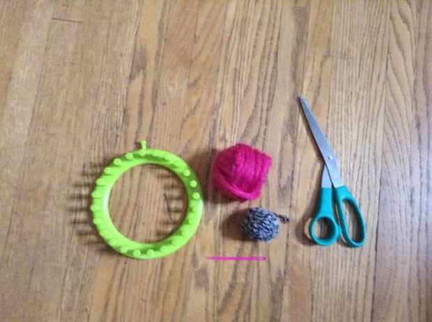 ThiPaso 1: materiales -hilo-telar que hace punto-gancho de tejerPaso 2: Configurar el telar Primero Envuelva el hilo alrededor de la clavija de la parte inferior en telar. Esto ayuda a mantener el hilo en su lugar. A continuación, empezar a envolver