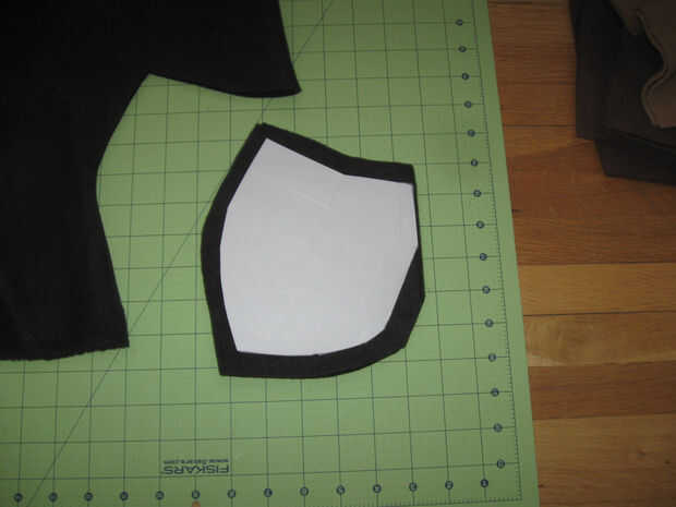 El material del forro interior del doblez y corte 2 piezas de la máscara facial como se muestra.