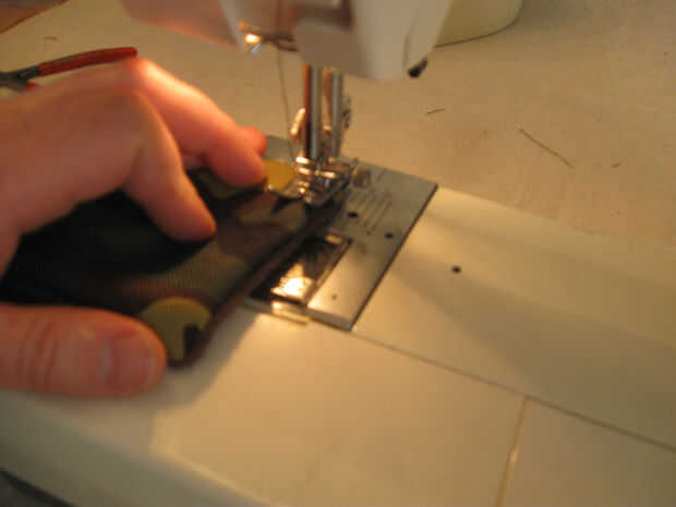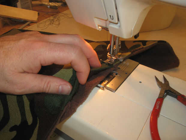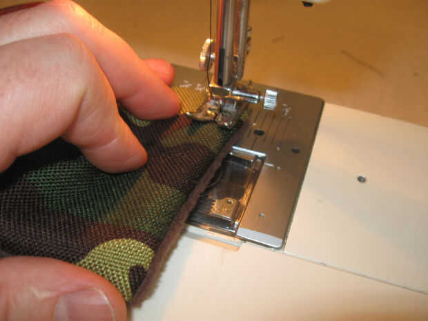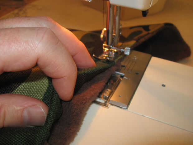 Alinee las costuras interiores y exteriores y coser alrededor del borde externo entero usando la línea de alineación 5/8 como una guía.