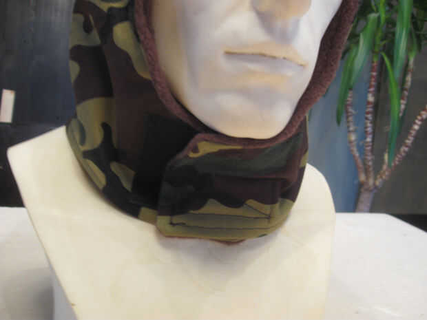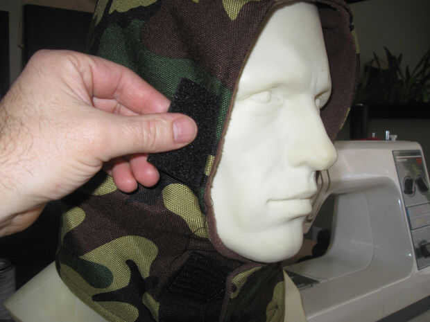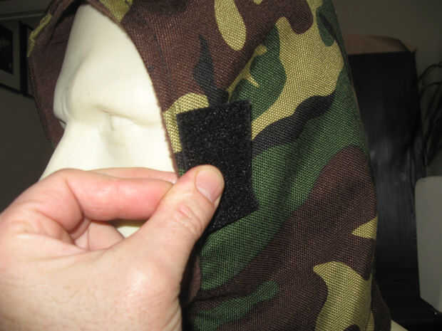 En el lado del forro coser 2 tiras similares del tipo de lazo del Velcro en la orientación de 90 grados como se muestra.
