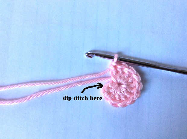 DC 10 interior anillo mágico. Tire de cadena más corta para apretar círculo. SL st a 1 DC.