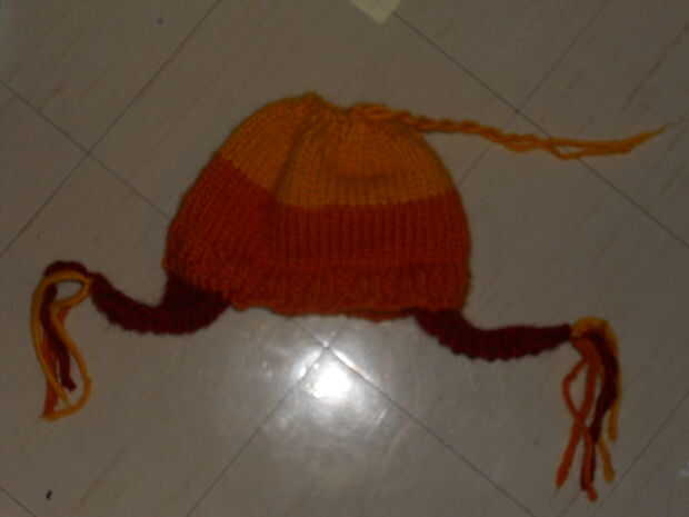 Se trata de un sombrero de caballero que diseñó mi hija. Diseño que es como una campana en el invierno con 2 colas de cerdo en los lados para la diversión. Tiene un cuello de bufanda-como que mantiene el cuello caliente. Espera es divertido y un buen