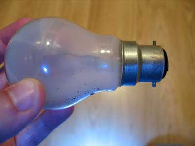 Sacar todo ese cableado y vidrio por lo que tiene la bombilla vacía. Cuando se despejó todo el vidrio roto, cables y otros componentes, golpeó la tapa inferior con tijeras para hacer un agujero. es donde irá el cable. Que tenga para moverse por las tijeras en el agujero para hacerlo más grande.