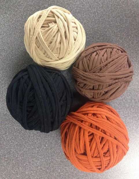 Jugar con tu montón de camisetas para ver que combinaciones de colores que más te guste. Si ya han hecho su hilo de camiseta, es una buena idea medir el hilo antes de balling para arriba y marcar la bola con la longitud. Simplemente prender una etiqueta en la bola de la etiqueta o utilizar un lazo de pan. Así, cuando usted hace un sombrero, usted puede ver a simple vista cuantas yardas tienes. He experimentado y había encontrado que menos de 25 yardas fue cortarlo muy cerca a ocho asaltos en un telar de 11.5". Por esta razón camisetas en tamaños más grandes son ideales para este proyecto.