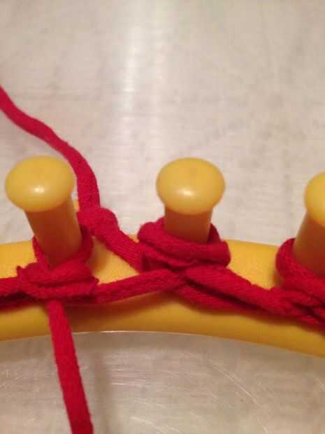 Se verá que hay dos lazos en cada clavija en el telar - uno en la parte superior y otro en la parte inferior de cada clavija.