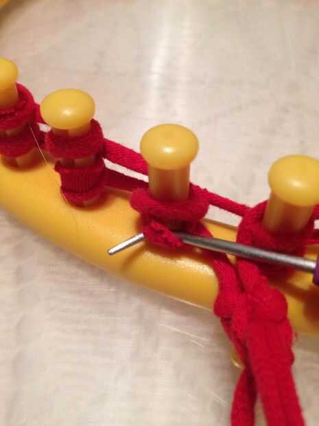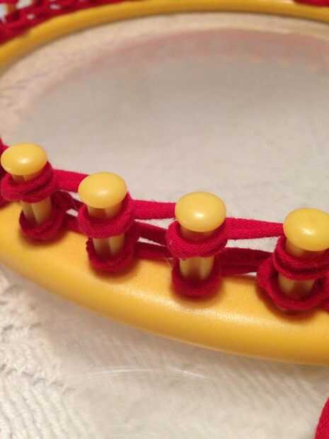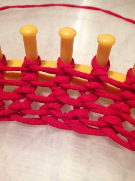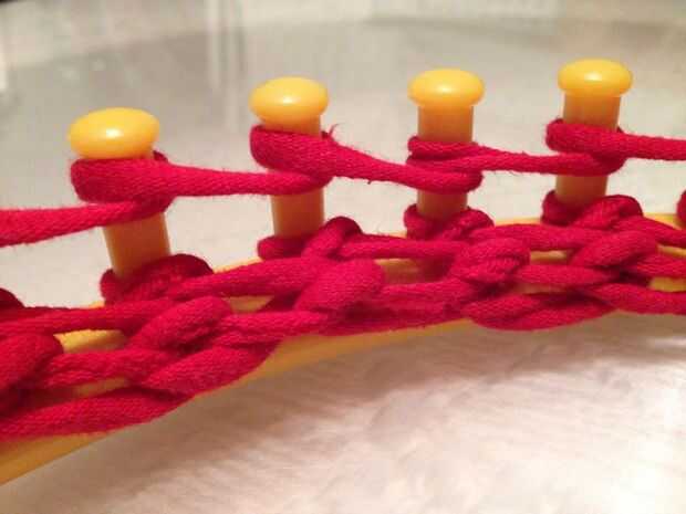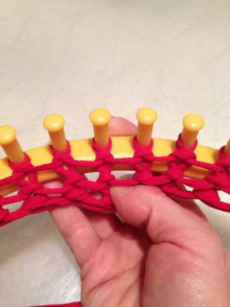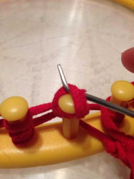 Imagen #3.) Continuar levantando cada bucle inferior sobre la parte superior alrededor de la circunferencia del telar.