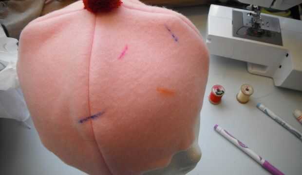 Para añadir los sprinkles, encontrar marcadores lavables que coinciden con los colores de hilo. Utilicé hilos rojos, azul y amarillos. Dibujar en el sombrero donde quieres poner los sprinkles. Hice alrededor de 5 en cada panel, y tienes que mezclarlas y hacer que ángulo de diferentes direcciones. Asegúrese de que usted puede conseguir el marcador del polar, terminé algunos de minas alrededor de la conmutación.